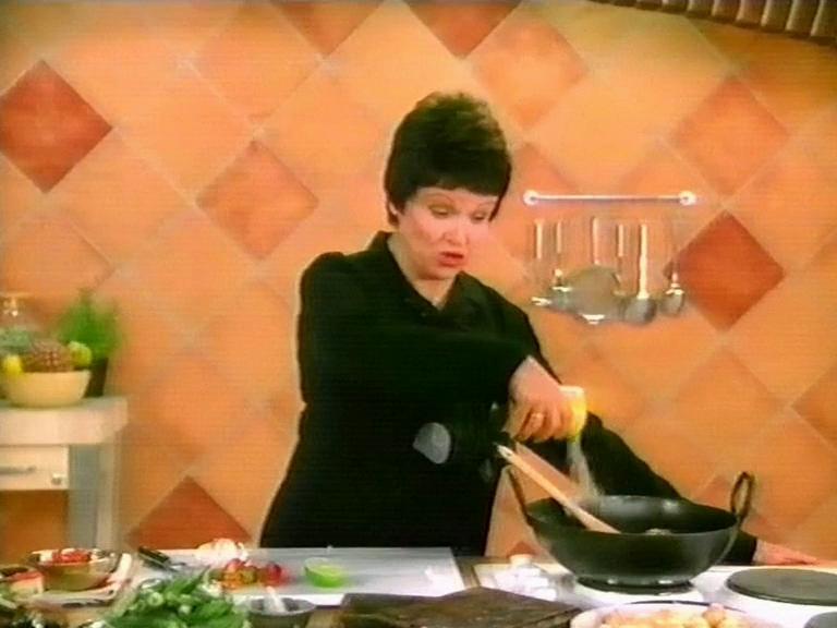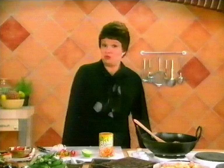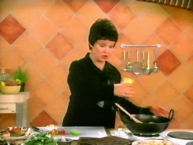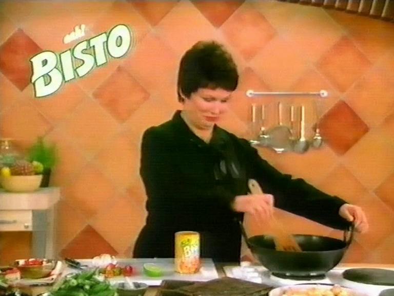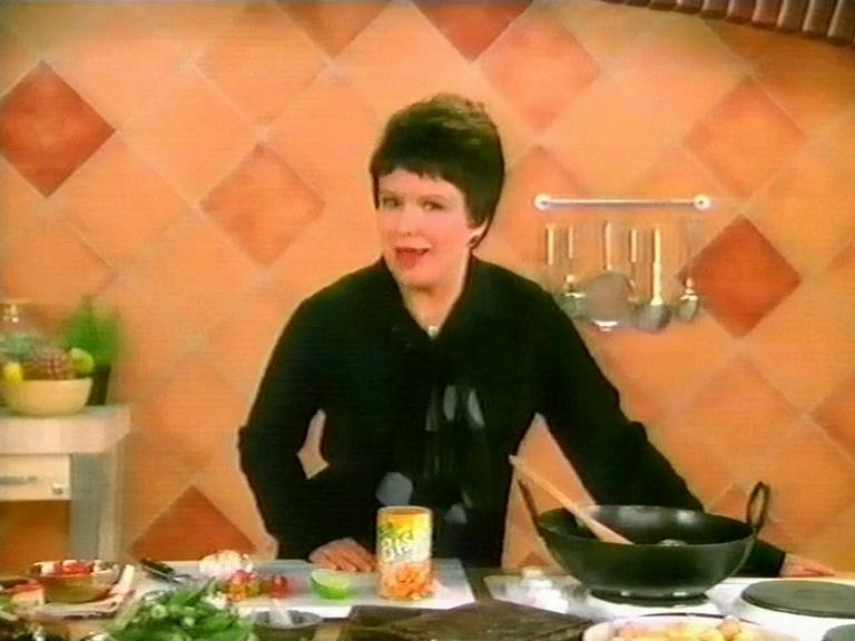 Julie Walters as a faux TV chef showing off what to do with Bisto Gravy Granules for Chicken!