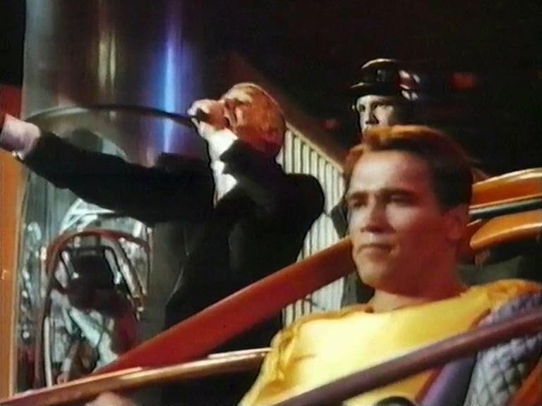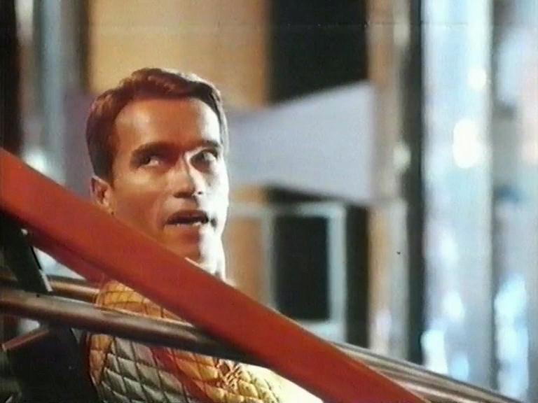 Arnold Schwarzenegger is The Running Man, in the year 2017, he has to choose between hard time and prime time, he’ll be back!